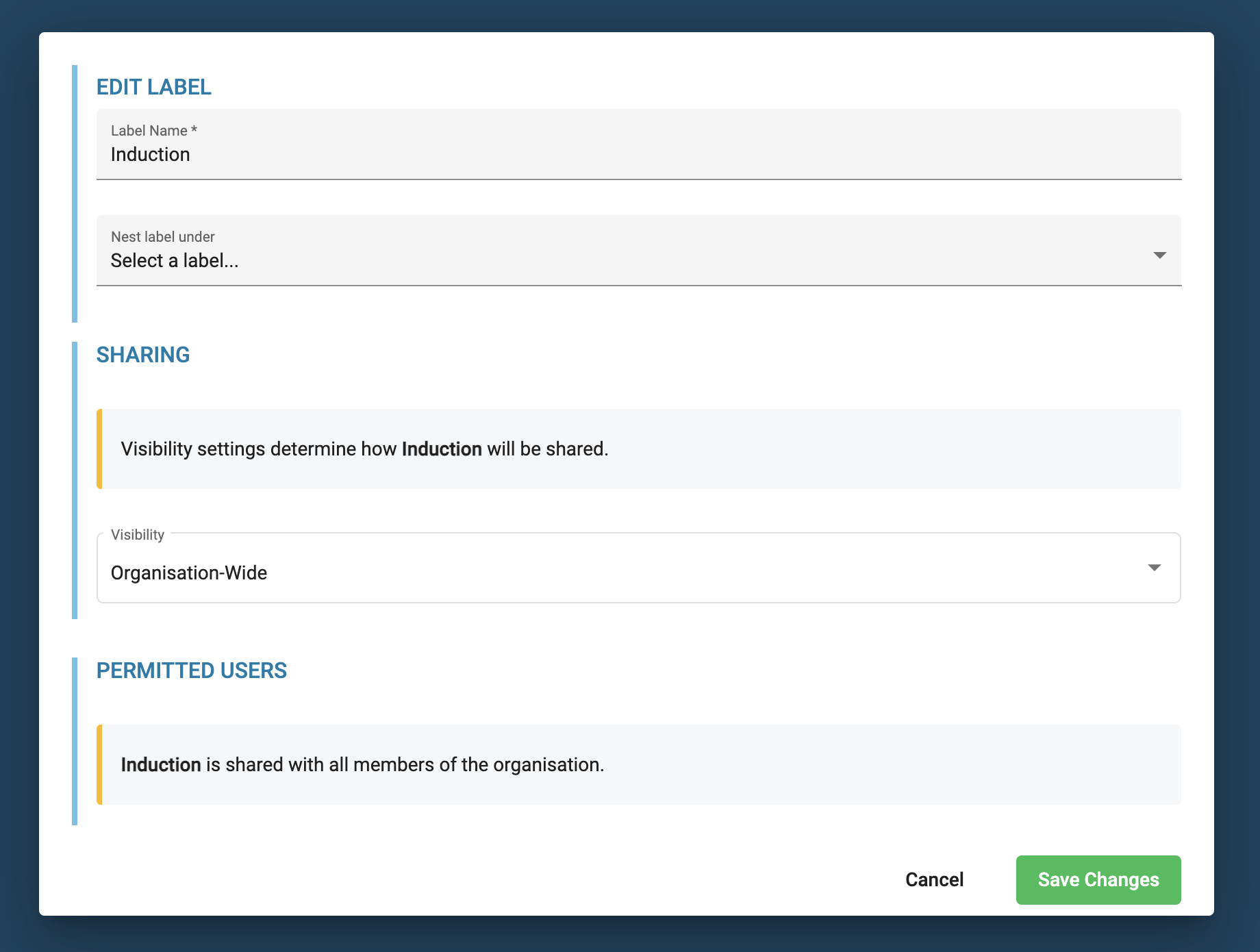 By default, your label directory will be set as Organisation-wide and everyone will have access to everything.