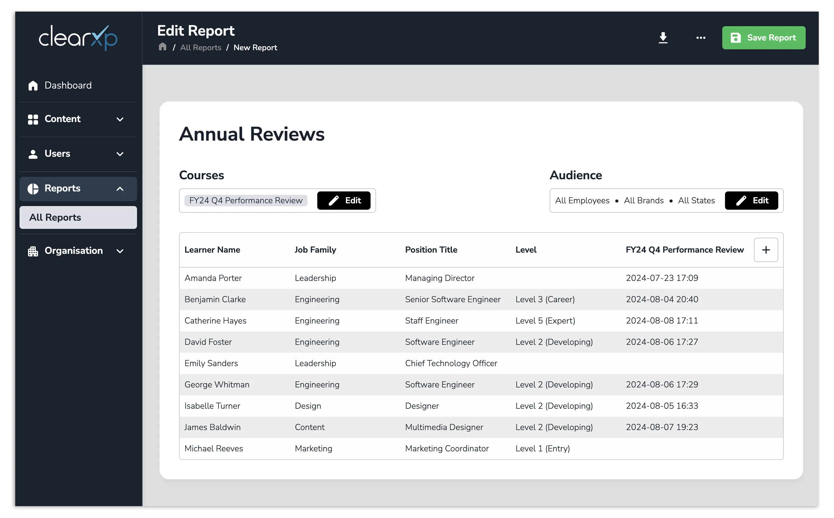 While we allow reporting on *absolutely anything*, we realise a lot of the time learning administrators just need a simple compliance report which is why we created a simplified interface for generating compliance reports.